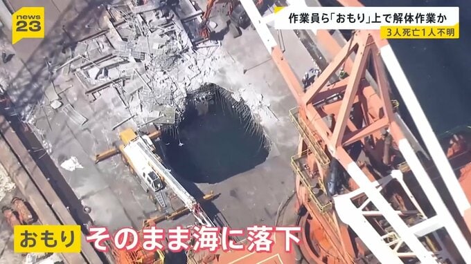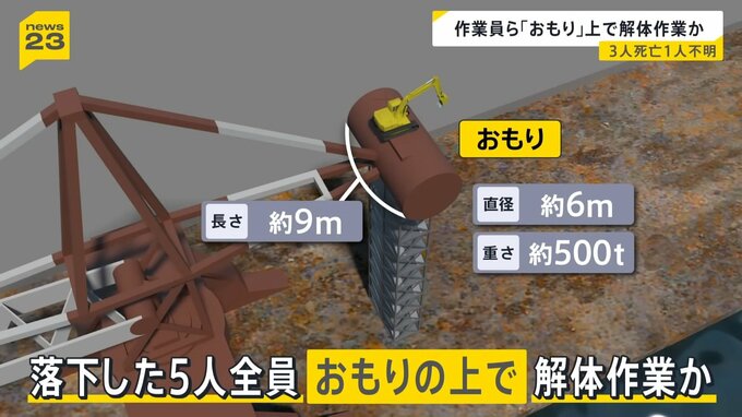 当時5人は、クレーンの先端に取り付けられた長さおよそ9メートル、重さおよそ500トンの「おもり」の上で解体作業にあたっていたとみられることが新たに分かりました。