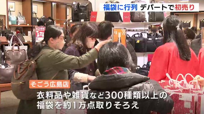 広島市中区の「そごう広島店」は1日が初売りです。衣料品や雑貨など300種類以上の福袋をおよそ1万点取り揃えているということです。