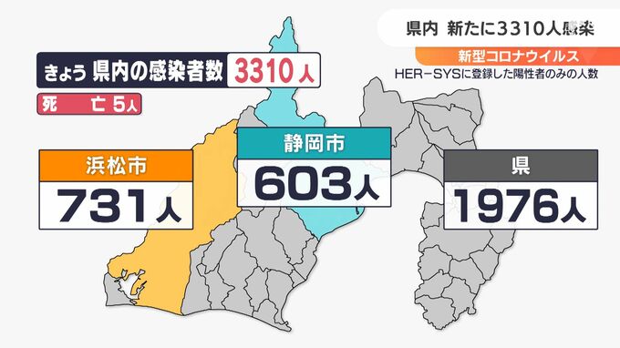 1月1日、静岡県内では新たに3310人が新型コロナウイルスに感染したことがわかりました。新たな感染者は浜松市が731人、静岡市が603人、その他の市や町が1976人です。また、5人の死亡が報告されています。3年ぶりに…