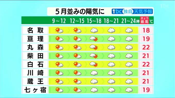 次第に薄い雲が広がり、夕方以降は曇り空に変わるでしょう。雨が降ることはない見込みで、最高気温は西部の方が高くなりそうです。