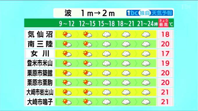 ■気仙沼:18℃ ■南三陸:20℃ ■女川:17℃