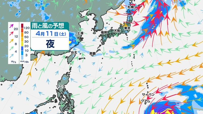 シミュレーションでは「反時計回りの渦」が、「サイパン」や「グアム」の南に現れ、「反時計回りの渦」はだんだんと勢力を強め、西から北へと進路を変えそうです。18日(土)頃には「沖縄の南」に達する予想です。