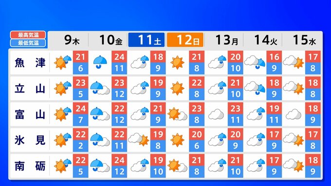 【台風情報】24時間以内に「台風」発生へ 13日(月)には950hpaの強い勢力に発達【雨風シミュレーション10日(金)~19日(日)/全国各都市の週間予報】気象庁の進路予想 南日本放送 2026年4月9日(木) 11:00 国内 天気 全国各都市の週間予報「9日(木)から15日(水)」 週間予報を『各都道府県につき5都市』ずつ画像で掲載しています。12日(日)にかけて、発達した低気圧の影響で北日本は荒れた天気となり、低気圧の発達の程度によっては大雨となるおそれがあります。画像でご覧ください。