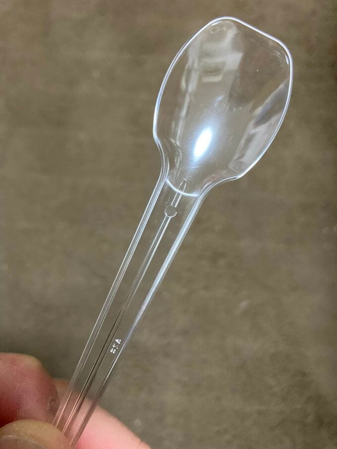 続けて「これまでは容器包装だけだったので、袋や容器のみの回収でしたが、これからはスプーンも資源として回収を始めた所もあります!製品プラといって、他にはプラハンガーなど、製品全てがプラ素材であれば回収します!」と呼びかけました。