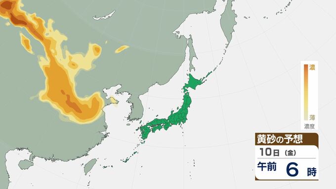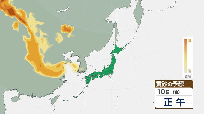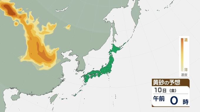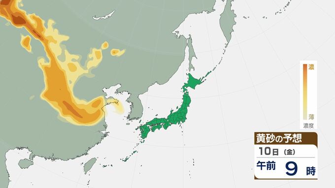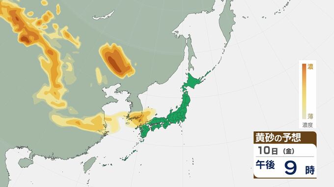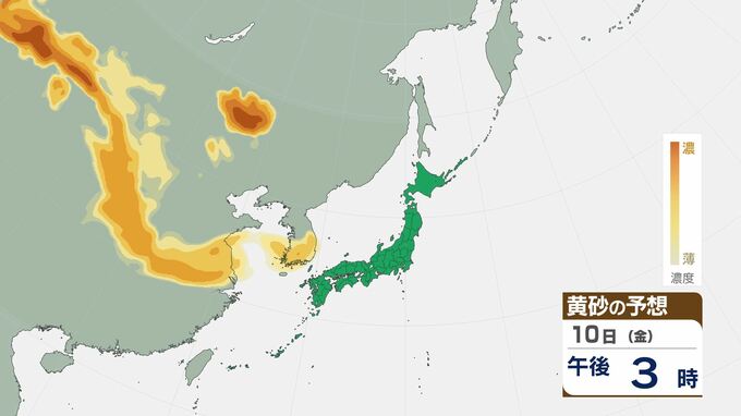 3. 【黄砂情報】10日(金)頃から日本列島広い範囲に黄砂が飛来か…九州・中国・四国・近畿・東海・関東・北陸・東北 アレルギー症状の悪化に注意【12日(日)にかけての黄砂飛来シミュレーション】