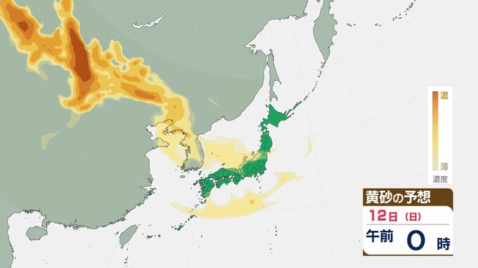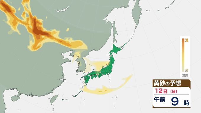 【黄砂情報】10日(金)頃から日本列島広い範囲に黄砂が飛来か…九州・中国・四国・近畿・東海・関東・北陸・東北 アレルギー症状の悪化に注意【12日(日)にかけての黄砂飛来シミュレーション】