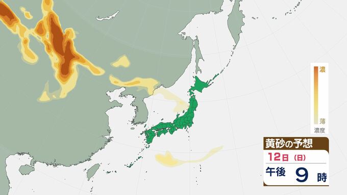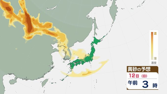 3. 【黄砂情報】10日(金)頃から日本列島広い範囲に黄砂が飛来か…九州・中国・四国・近畿・東海・関東・北陸・東北 アレルギー症状の悪化に注意【12日(日)にかけての黄砂飛来シミュレーション】