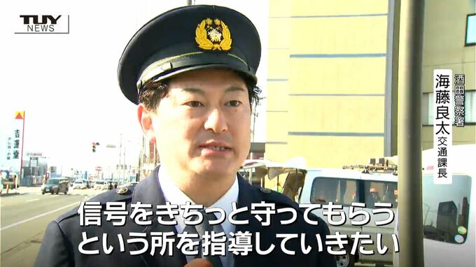 酒田警察署 海藤良太 交通課長「各関係団体の方々と一緒に啓発が出来て非常に心強い。子どもが交通事故に遭うケースで一番多いのが道路を横断中。道路を横断する際は左右の安全を確認したうえで、信号をきちっと守っていただくという所を指導していきたい」