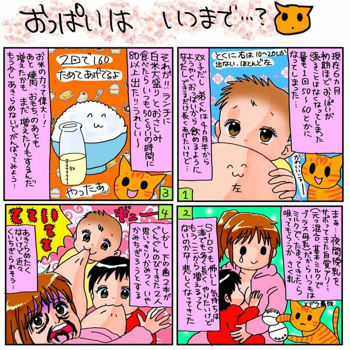 中川さんは双子への母乳について「なるべく長くあげたいけど 噛み付くようになり量も減ってきて悲しくなってきました」と投稿。