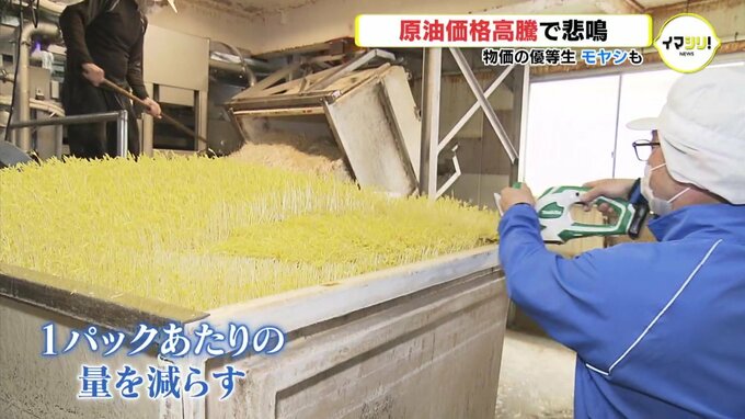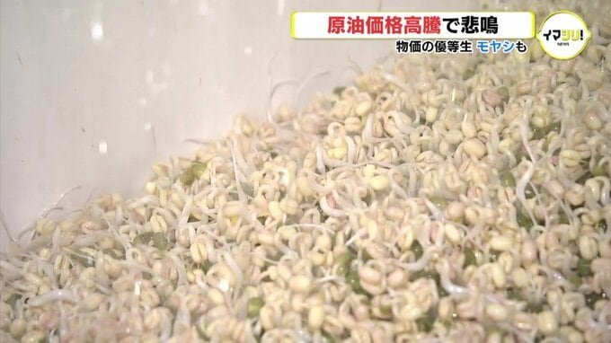 田中商店では、地下水をくみ上げ、40℃にあたためた温水に、原料となる豆を浸して育てます。水温を上げるために使う重油が毎月のように上昇していることに加え、パッケージ用のフィルムの価格も上がっており、苦しい状況が続いています。