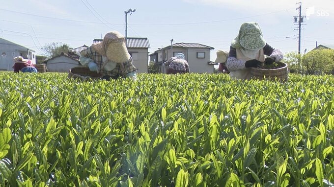 本格的な新茶シーズンを前に静岡県島田市では4月9日朝、露地栽培の新茶の初摘みが行われました。島田市阪本にある茶畑では、午前8時から近所の農家など約30人が集まり新芽を摘み取りました。摘み取ったのは「さえ…
