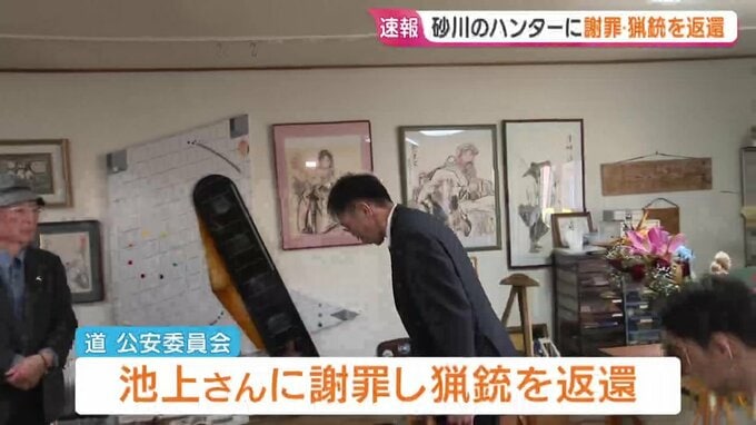 ヒグマの駆除をめぐって猟銃所持の許可を取り消された砂川のハンターに9日、北海道の公安委員会が謝罪し、猟銃が返還されました。