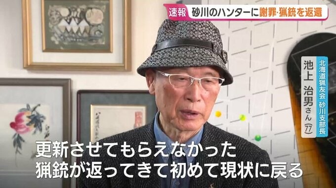 北海道の公安委員会から謝罪を受けたのは、砂川市のハンター、池上治男さん(77)です。