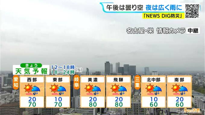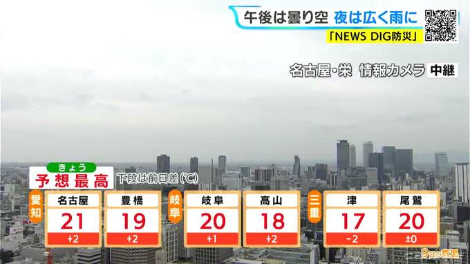 最高気温は名古屋で21℃、岐阜や尾鷲で20℃、津では17℃くらいになるでしょう。日中は過ごしやすい暖かさになる所が多い予想です。