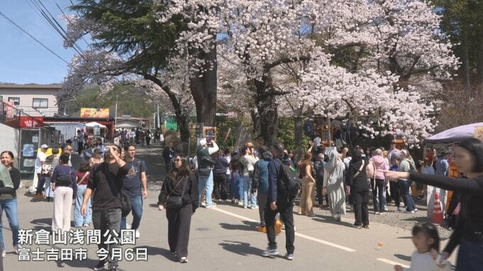 オーバーツーリズム対策として さくら祭りの開催を見送った山梨県富士吉田市の新倉山浅間公園には今年も大勢の観光客が訪れています。