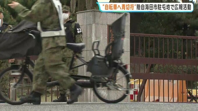 その自衛官たちに向け、今月から導入された自転車の青切符などに関するチラシを配りました。