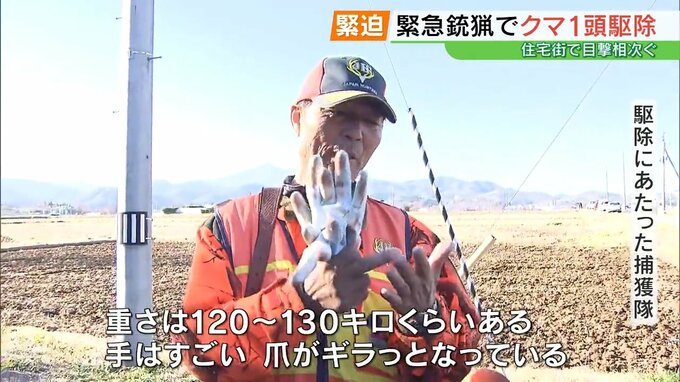 駆除にあたった捕獲隊「大きかった。重さは120~130キロくらいある。手はすごい。爪がギラっとなっていた」