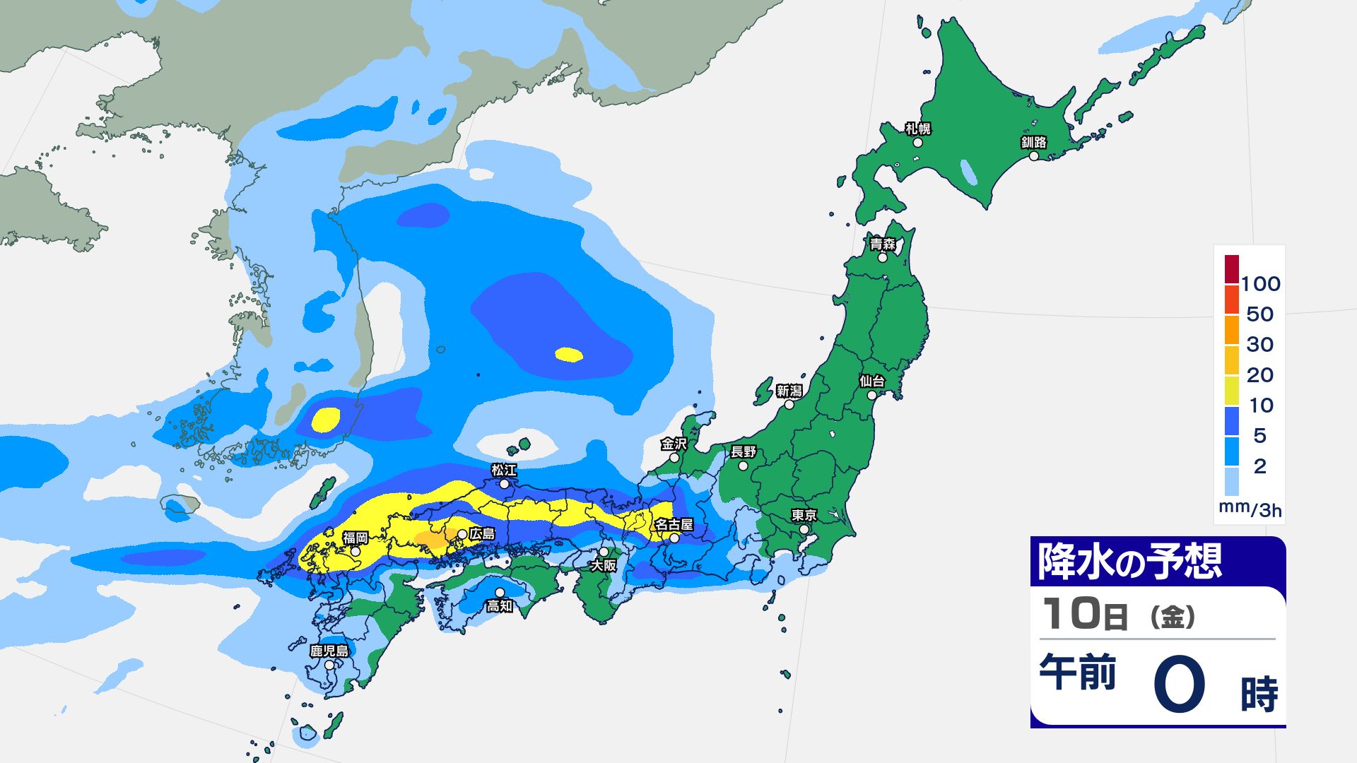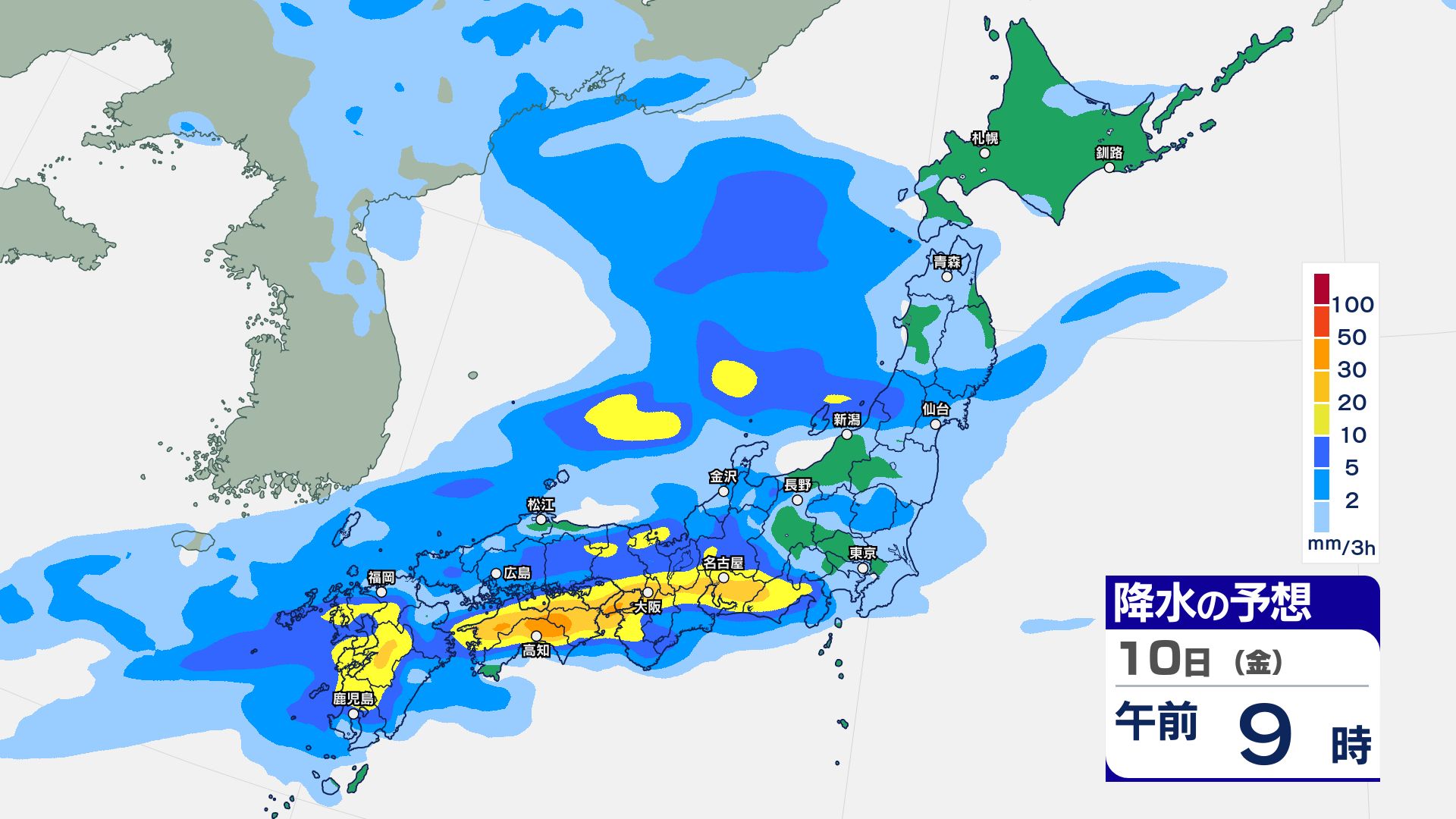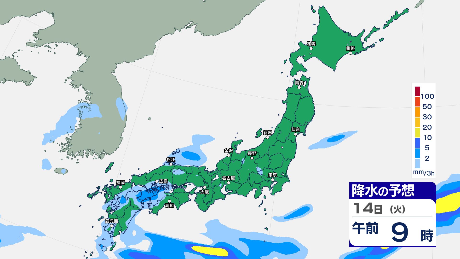 【雨情報】9日夜~10日にかけて低気圧が発達 前線が本州付近を通過する見込み 西日本では大気の状態が非常に不安定に 落雷や竜巻などの激しい突風、急な強い雨に注意 信越放送 2026年4月9日(木) 13:31 国内 9日~14日の降水予想