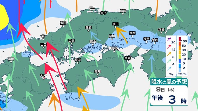広島県は、湿った空気や前線の影響で雨が降る見込みです。