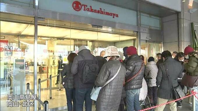 岡山高島屋では昨年より2割ほど多い約1500人の買い物客が行列をつくり、予定を15分早めての開店となりました。