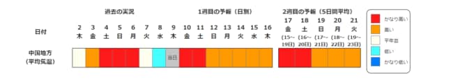 高温に関する早期天候情報(中国地方)