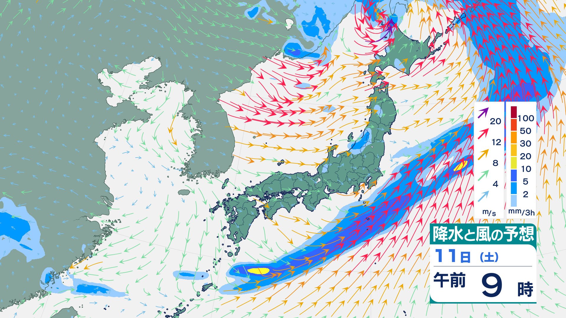 西日本は15日ごろから“著しい”高温の可能性 近畿は平年比+2.6℃以上か 北陸・東海・近畿・中国・四国・九州に早期天候情報 気象庁 【雨と風のシミュレーション】 チューリップテレビ 2026年4月9日(木) 15:37 国内 天気 11日(土)雨と風のシミュレーション