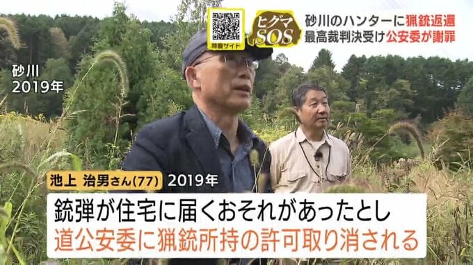 砂川のハンター・池上治男さんは、2018年、砂川市の要請でヒグマを駆除した際、銃弾が住宅に届くおそれがあったとして、翌2019年、北海道公安委員会に猟銃所持の許可を取り消されました。