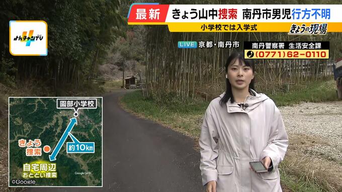 園部小学校6年・安達結希さん(11)が行方不明となって18日目の4月9日は、園部小学校から南に約6kmの場所で、約40人態勢で捜索活動が行われました。