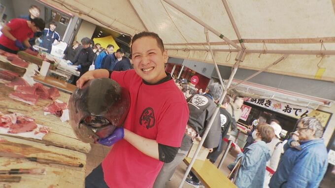 初日の9日、本マグロの解体ショーが行われ、訪れた買い物客を沸かせました。