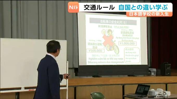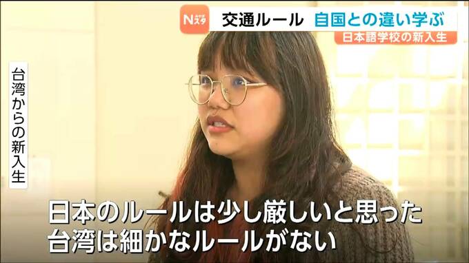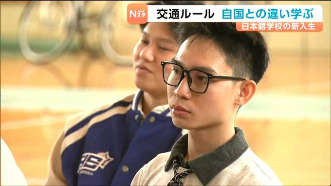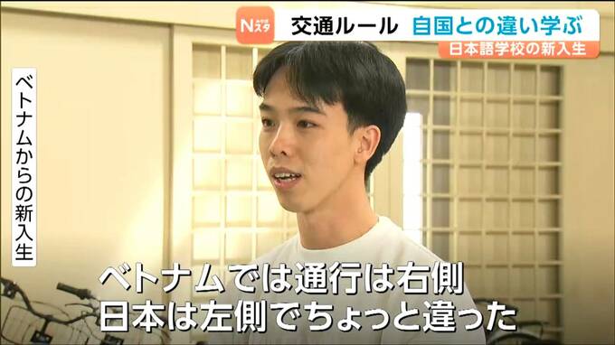 自国との交通ルールの違いを学びました。宮城県大崎市の日本語学校では9日に交通安全教室が開かれ、新入生が交通ルールの基礎や自転車の乗り方を学びました。