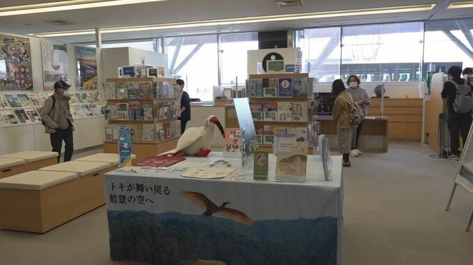 5月31日に石川県羽咋市で本州で初めて国の天然記念物「トキ」が放鳥されます。能登を訪れる人たちに豊かな自然環境をPRしようと、9日、能登空港にトキのグッズやパンフレットなどが並ぶブースが設置されました。