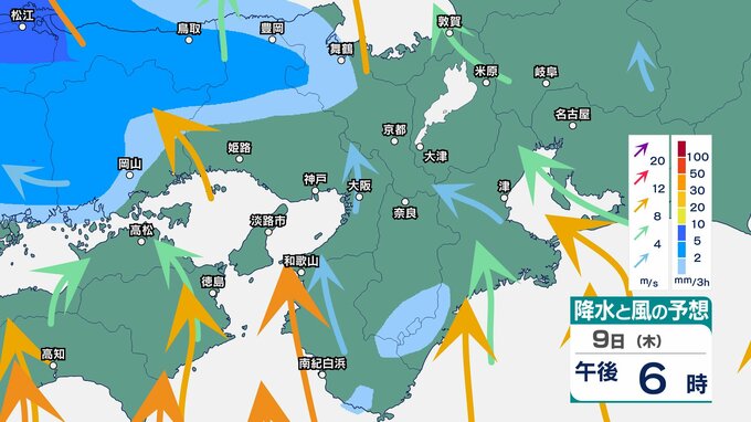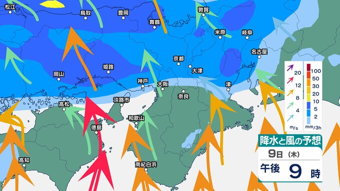 9日(木)~14日(火)近畿地方 3時間ごとの雨風シミュレーション
