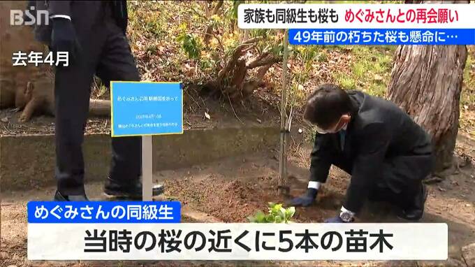 めぐみさんの同級生は、毎年この時期に中学校を訪れ、桜の木の下でめぐみさんとの再会を祈っています。
