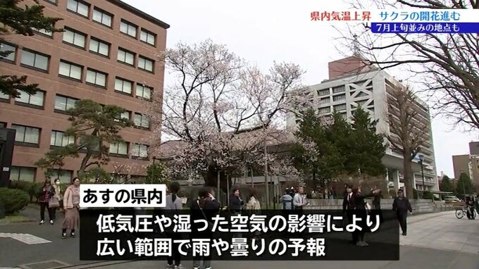 県内はこのあと気圧の谷の影響で曇りのところが多くなる予報で、10日は低気圧や湿った空気の影響により、広い範囲で雨や曇りとなる見込みです。