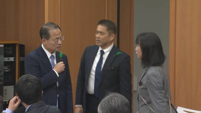 会見の5分前、県職員と念入りに打ち合わせを行うなど、終始、慎重な姿勢を見せ、会見場に現れた山野知事。会見で使う指差し棒を手にすると…。