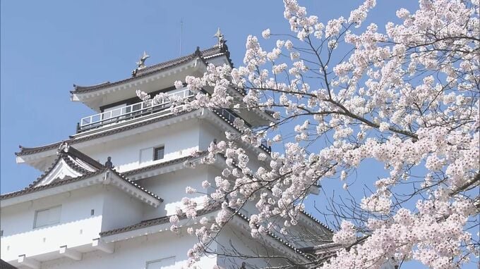 穏やかな日差しに包まれ、咲き誇るサクラ。会津若松市の鶴ヶ城公園では、サクラが満開となっています。
