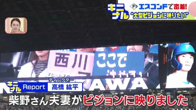 3回裏、西川遥輝選手の打席で、柴野さん夫妻がビジョンに登場!さすが、柴野さん夫妻!この日もしっかりとビジョンに映りました!