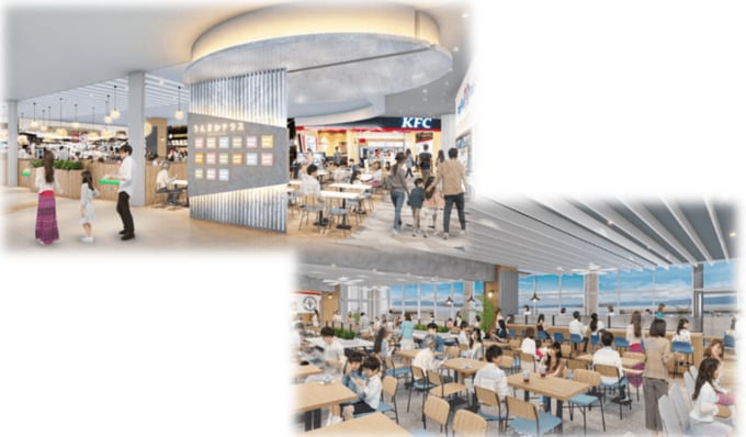飲食エリア「うんまかテラス」は約1,000席規模に拡大します。小さな子ども連れが安心して食事ができる場として、小上がりスペースを新たに設けます。