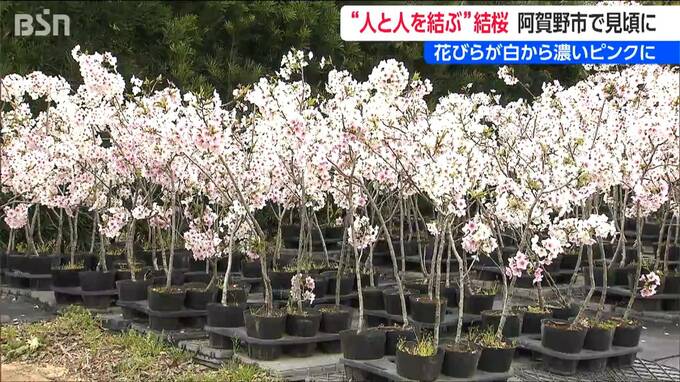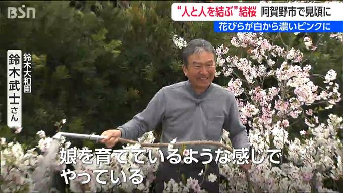 阿賀野市内で造園業を営む鈴木武士さんは、2012年に見つけた“色の変わる桜”を『結桜』と名づけました。そして、人と人を結ぶという思いを込めたこの桜を多くの人に見てもらおうと、接ぎ木で増やしていきました。