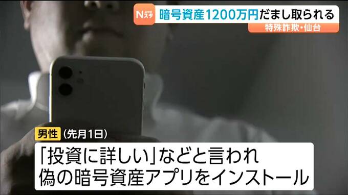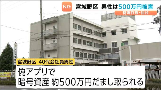 また、2月から3月にかけて仙台市宮城野区の40代会社員男性も偽のアプリを通じて暗号資産約500万円をだまし取られています。