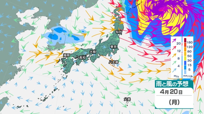 ▼14日の雨風予想