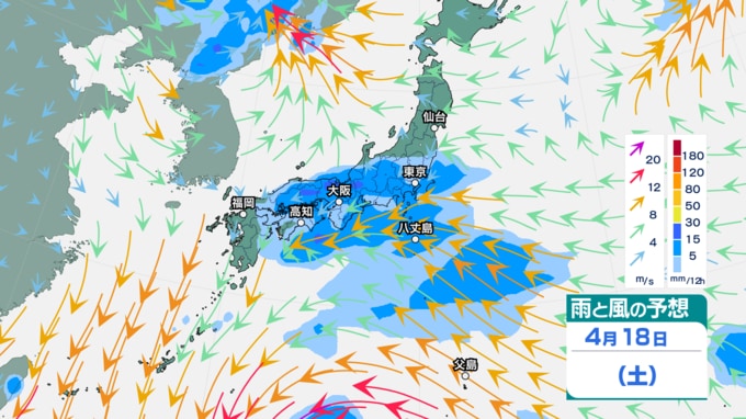 ▼12日の雨風予想
