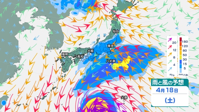 台風による雨は18日からの予想(雨風シミュレーション)