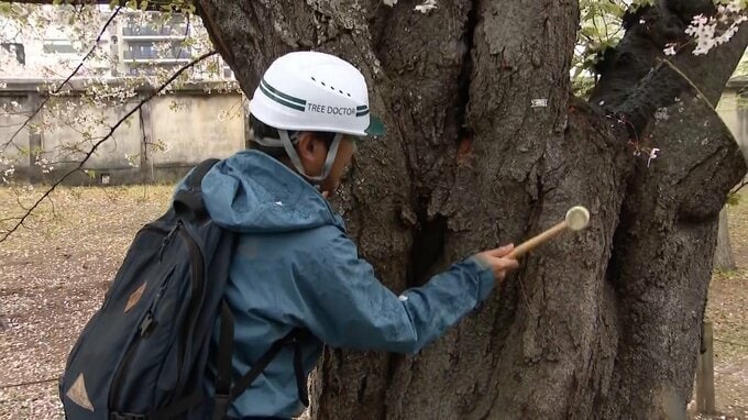 桜1000本を緊急点検「打音検査」で見抜く内部の空洞
