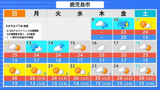 4月15日頃から「この時期としては10年に一度程度しか起きないような著しい高温」になる可能性 気象庁が「高温に関する早期天候情報」発表【東海、近畿、北陸、中国、四国、九州北部、九州南部・奄美】関東甲信なども気温高い日多く 南日本放送 2026年4月10日(金) 06:00 国内 福岡県 佐賀県 長崎県 熊本県 大分県 宮崎県 鹿児島県 沖縄県