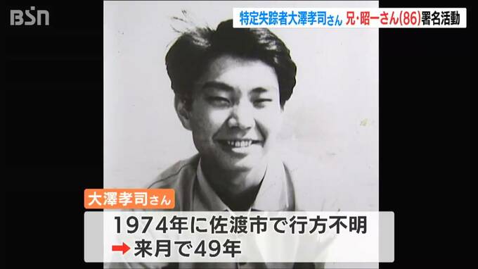 孝司さんは1974年に佐渡市で行方不明になり2月で49年になります。昭一さんは現在86歳。「いつ倒れてもおかしくない」と話し今年の活動への決意を語りました。