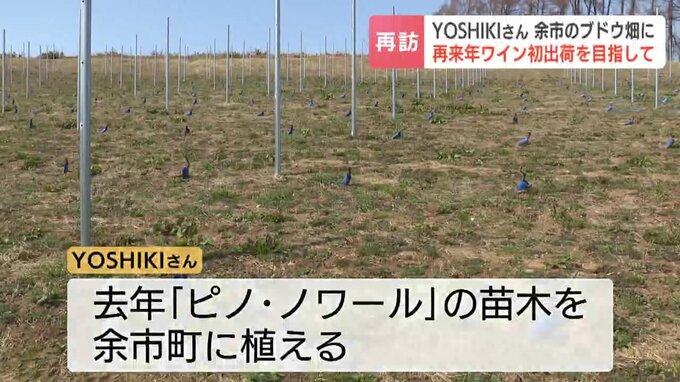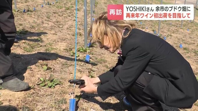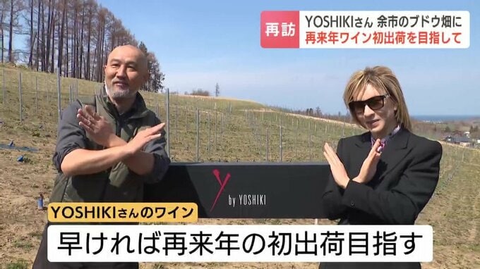世界で活躍する、XジャパンのYOSHIKIさんが、ワイン造りのため、2025年に苗木を植えた北海道余市町のブドウ畑を訪れました。