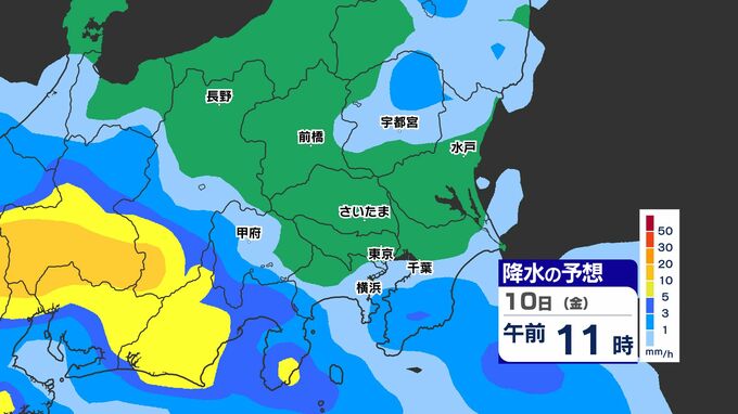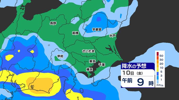 【東京首都圏 雨の金曜日】雨のあとは 暑い土曜日「夏日続出 熱中症に注意」【雨シミュレーション10日(金)/週間予報】東京・神奈川・埼玉・千葉・群馬・栃木・茨城・長野・山梨 南日本放送 2026年4月9日(木) 19:20 国内 天気 雨シミュレーション10日(金) 湿った南風が吹き、神奈川県など関東南部を中心に「活発な雨雲」が予想されています。 シミュレーションは実際の降り方と異なったり、実際よりも広く予想されることがあります。気象庁から発表される最新の気象情報を確認してください。