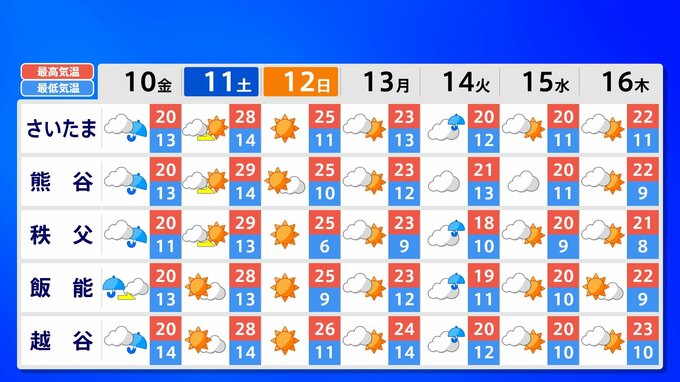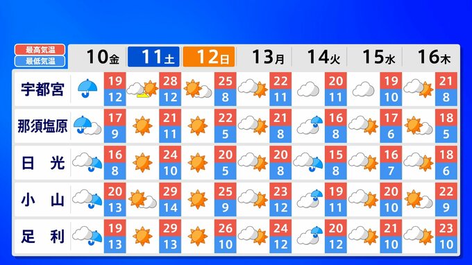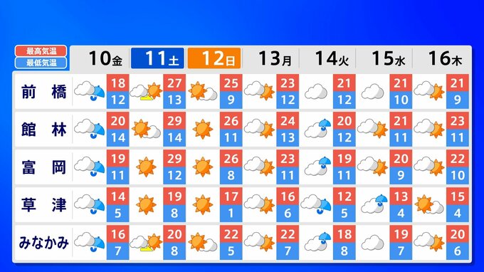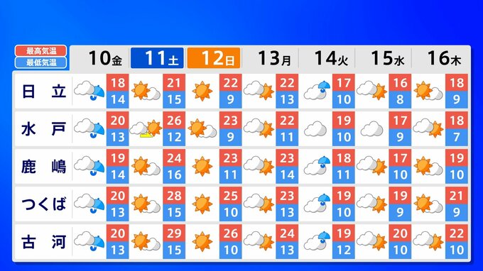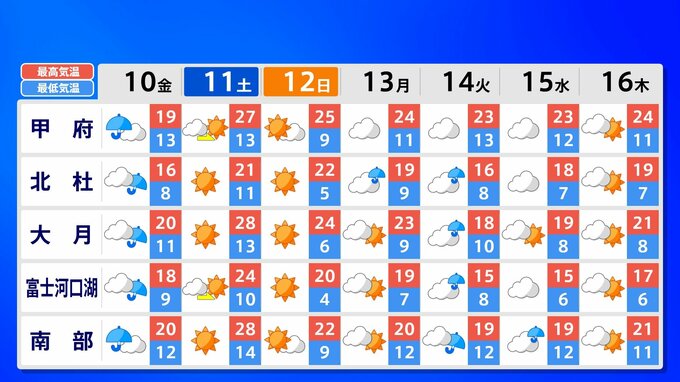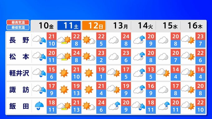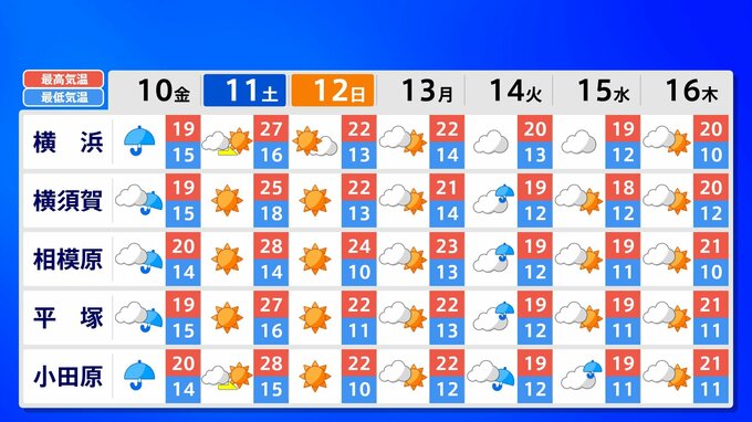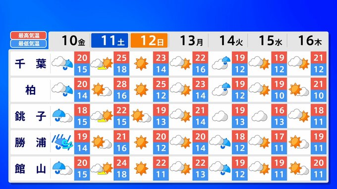 関東甲信地方 各都市の週間予報(10日(金)~16日(木))