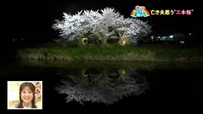 三本桜、夜にライトアップすると…